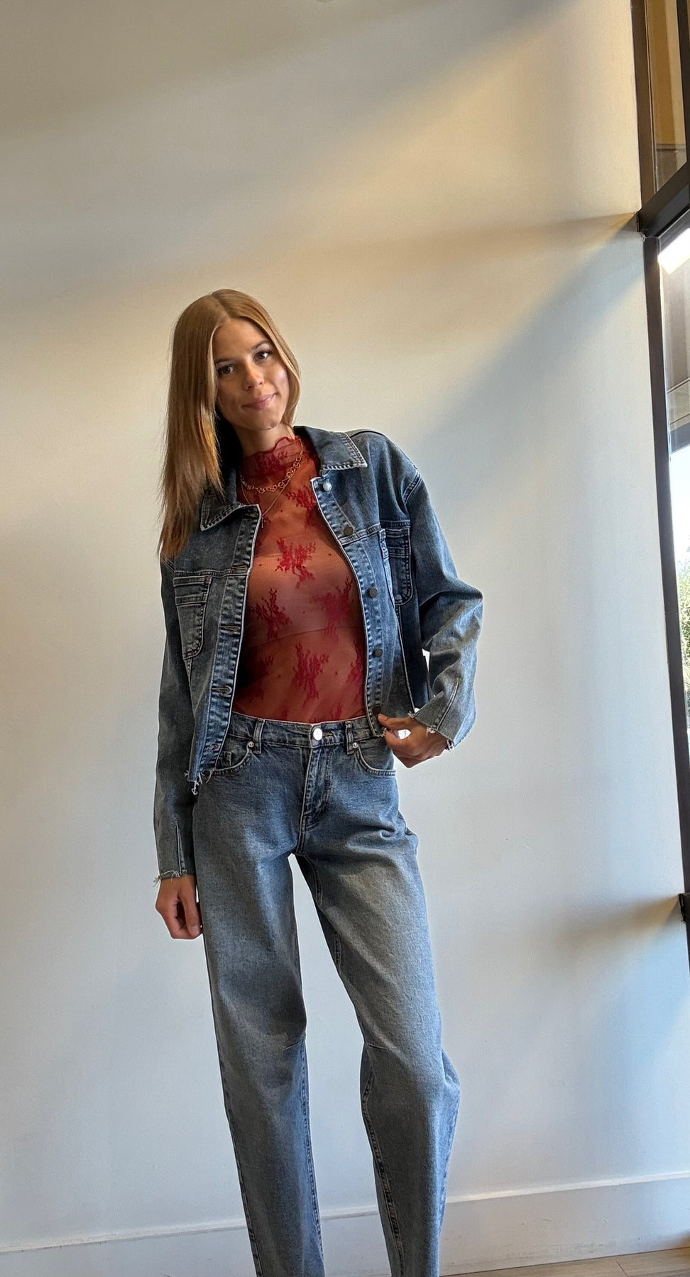 Elevate your wardrobe with the Bibi Long Sleeve Lace Top, a sophisticated layering piece crafted from delicate sheer lace. Perfectly designed to wear over a bralette or beneath overalls, t-shirts, or a stylish sweater vest, it adds a subtle touch of elegance and texture to any ensemble. Embrace its versatile charm for effortless, on-trend looks.