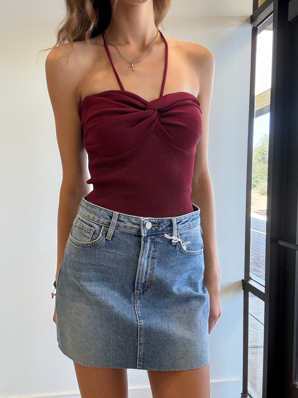 Introducing the Avery Sweater Tie Neck, a luxurious sweater in a rich maroon color. Elevate your summer style with this elegant piece, featuring a trendy tie neck. Experience ultimate comfort and fashion-forward vibes with this must-have addition to your wardrobe.