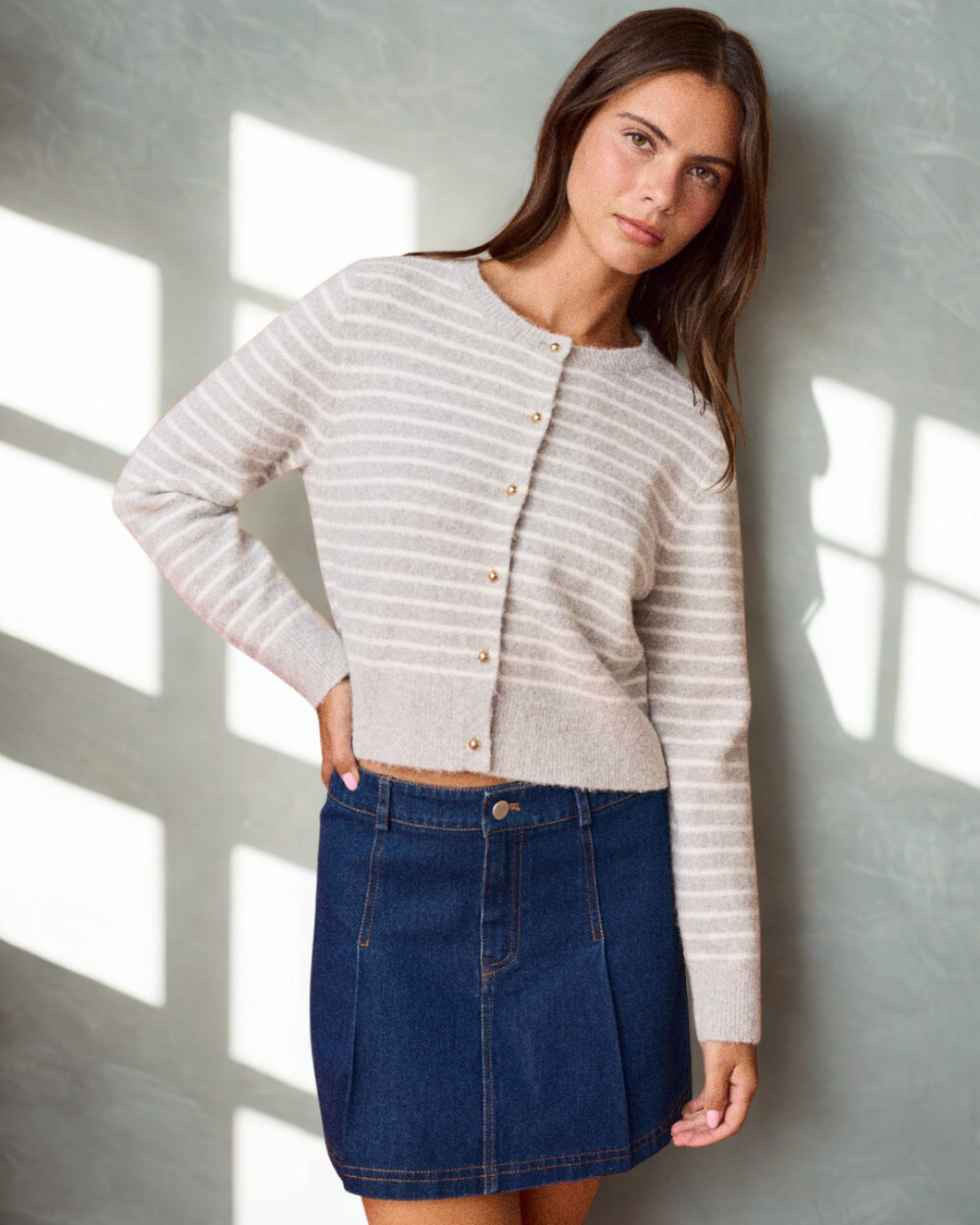Briley Striped Cozy Gold Button Cardigan