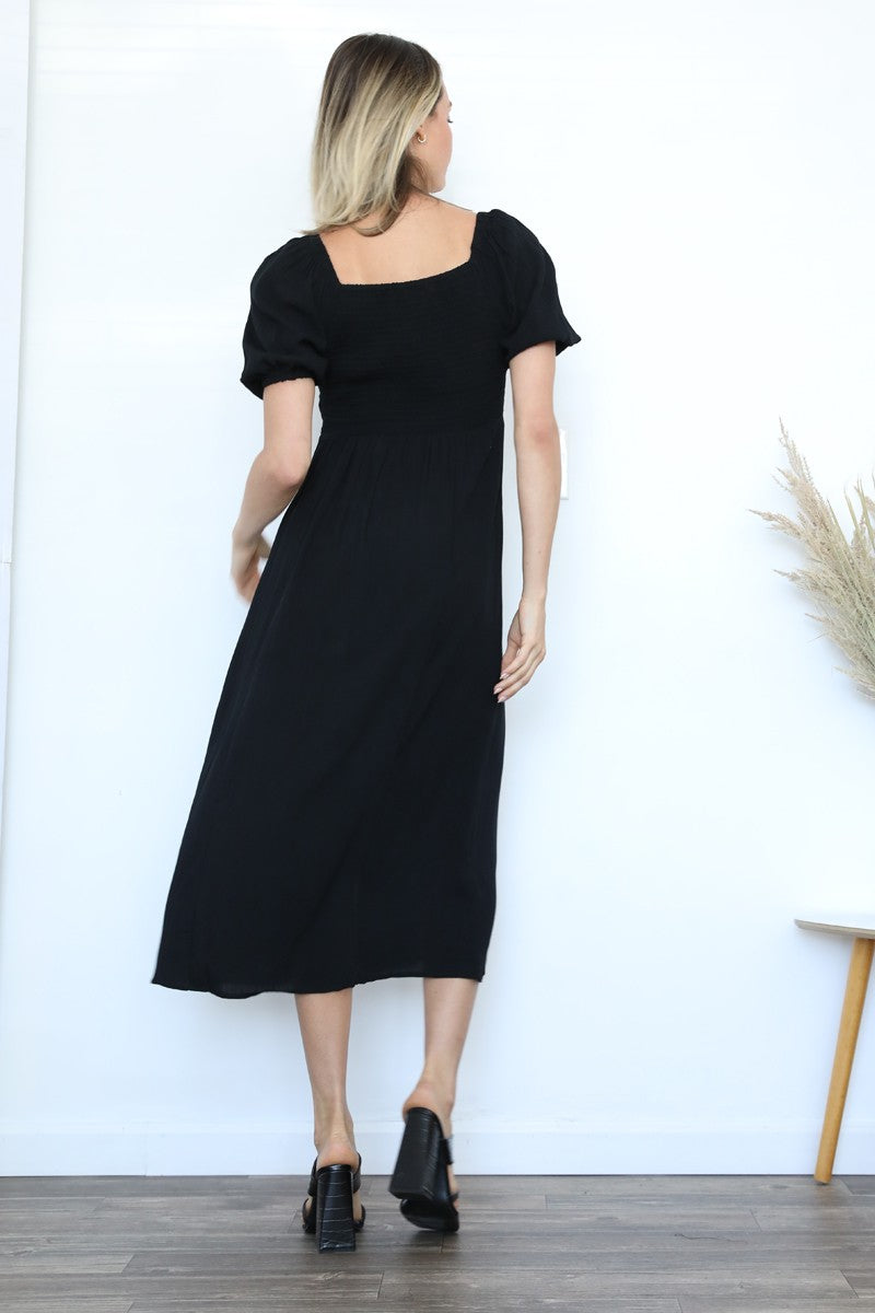 Get ready for endless compliments with the Els Tie Front Maxi Dress! This midi length black dress is not only lightweight, but also versatile - dress it up with some booties or keep it casual with a denim jacket. Don't miss out on the cutest addition to your wardrobe!