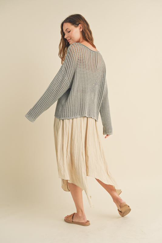 Introducing the Camile Mesh Crop Sweater, a versatile and lightweight piece perfect for transitioning between seasons. Its delicate mesh design is both elegant and practical, making it an essential addition to any wardrobe. Elevate your style with this exclusive and timeless sweater.